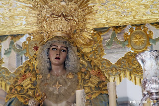 La Virgen al no ser una Dolorosa, no lleva lágrimas.
